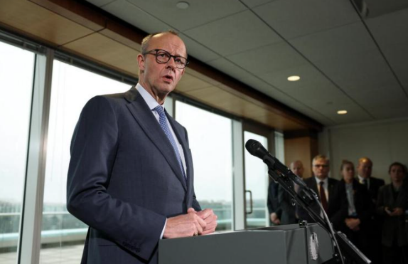 德国总理默茨3月3日到白宫与美国总统特朗普会面后,在华盛顿召开记者会